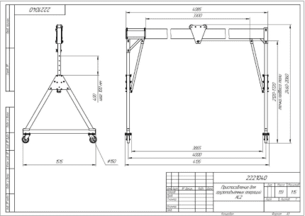 Козловой кран легкий алюминиевый (МПУ) высокий, точка подвеса тали 4000 мм, г/п 3000 кг, пролет 4 метра